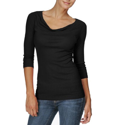 Michael Stars Slub 1x1 3/4 Sleeve Drape Neck Tee, One Size, Black customers ratings
